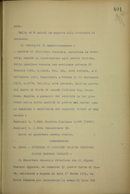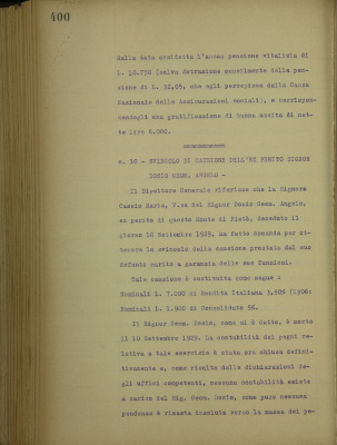 Parte prima - Aziende di Credito 10. Svincolo di cauzione: a) dell'ex agente perito Dosio Angelo b) dell'ex commesso Pastore Ignazio