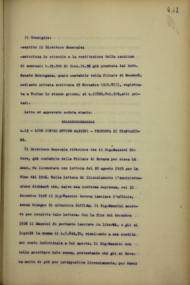 Parte prima - Aziende di Credito 14. Impiegato sig. dott. Renato Rosingana. Domanda di svincolo da cauzione