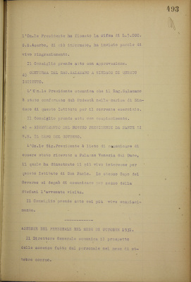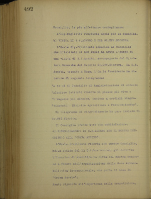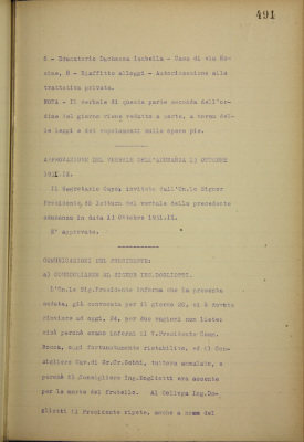 Comunicazioni del Presidente: condoglianze a Dogliotti; visita di S.E. Acrbo del Gran Ufficiale Nicotra; ringraziamenti di S.E. Acerbo per il nostro contributo alla Coppa Acerbo; conferma del rag. Salamano a sindaco di questo Istituto; ricevimento del nostro presidente da parte del Capo del Governo a Palazzo Venezia; assenze personale ottobre 1931