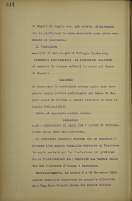 Parte prima - Aziende di Credito 16. Preventivo di spesa per i lavori di sistemazione della sede dell'Istituto