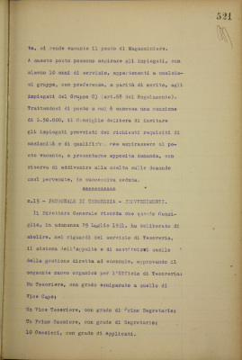 Parte prima - Aziende di Credito 18. Provvedimenti per il posto di ispettore perito dell'azienda pegni