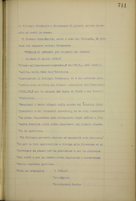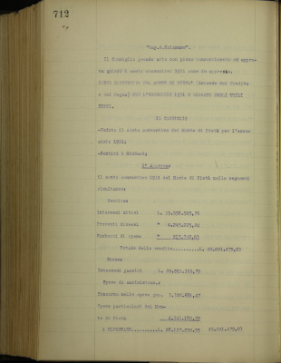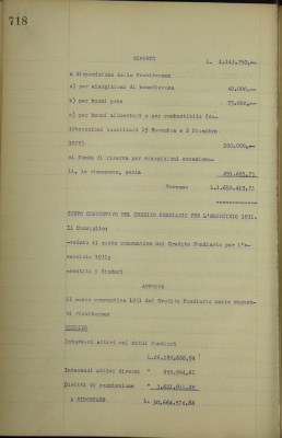 Parte prima - Aziende di Credito 1. Presentazione dei conti consuntivi dell'esercizio 1931 e delle relazioni che li illustrano: a) Monte di pietà b) Credito fondiario