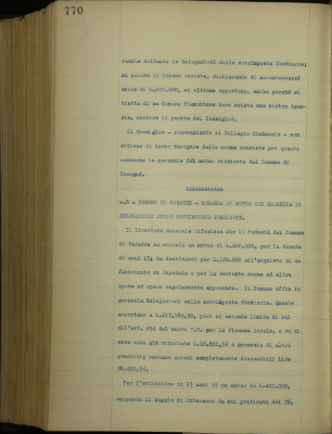 Parte prima - Aziende di Credito 8. Comune di Varazze. Domanda di mutuo con garanzia di delegazioni sulle sovraimposte fondiarie