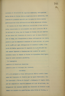 Parte prima - Aziende di Credito 2. Apertura di credito in conto corrente alla città di Torino. Assunzione a fermo di lire 20.000.000 nominali di obbligazioni di prossima emissione