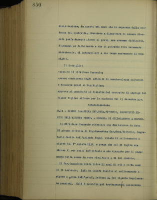 Parte prima - Aziende di Credito 11. Sig. Camandona cav. geom. Vittorio, segretario perito dell'Azienda Pegni. Domanda di collocamento a riposo