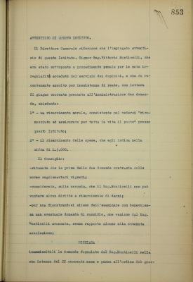 Parte prima - Aziende di Credito 13. Istanza del sig. Monticelli rag. Vittorio, impiegato avventizio di questo Istituto