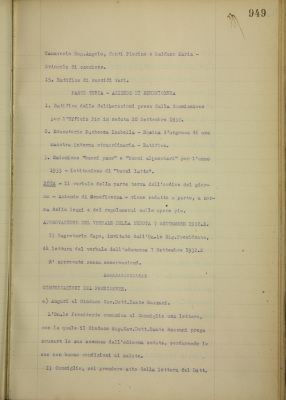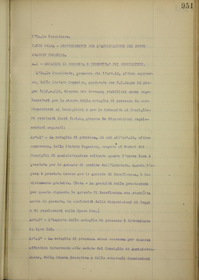 Comunicazione del presidente: auguri al sindaco Bazzani; visita del Capo del Governo, proposta di erogazione