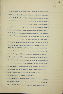 Parte prima - Aziende di Credito 3. Società Acque Medio Adige. Proposta di transazione