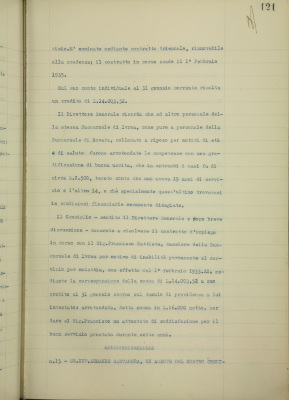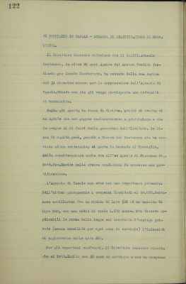 Parte prima - Aziende di Credito 15. Gran Ufficiale Armando Santanera, ex agente del nostro Credito Fondiario in Casale, domanda di gratificazione di buona uscita