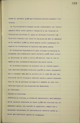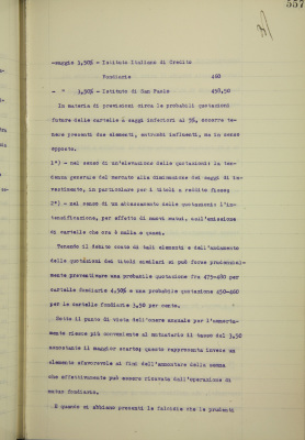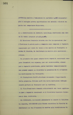 c) considerazioni sull'opportunità di riprendere la emissione di cartelle fondiarie 3,5% d) proposta di deferire alla giunta esecutiva la facoltà di deliberare in caso di urgenza, salvo ratifica, in merito al deposito di cauzioni provvisorie di cui all'articolo 15 n.10 del regolamento