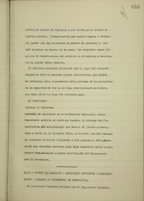 Parte prima - Gestioni di Credito 14. Malusardi Domenico, primo segretario. Domanda di proroga di aspettativa per motivi di indole privata