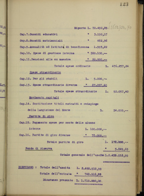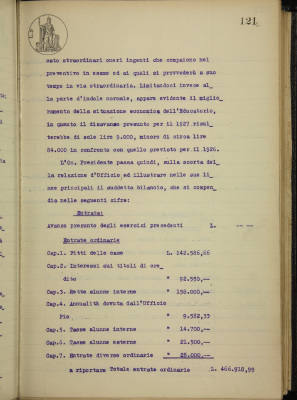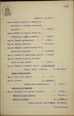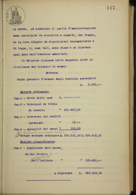 Bilanci preventivi per l'esercizio 1927: a) dell'Ufficio Pio b) dell'EDI