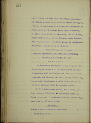 1. Bilanci preventivi dell'esercizio 1928: a) dell'Ufficio Pio b) dell'EDI