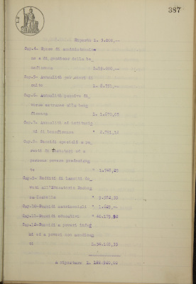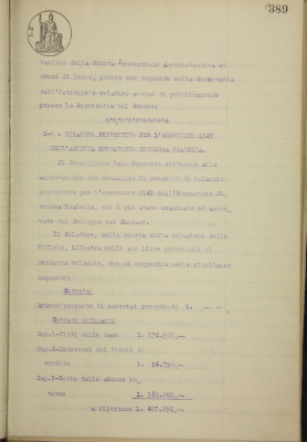 Parte seconda - Aziende di Beneficenza 2. Bilanci preventivi per l'esercizio 1929: a) dell'Ufficio Pio b) dell'EDI