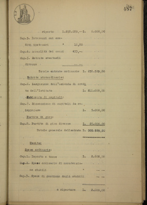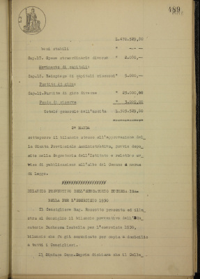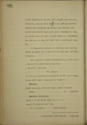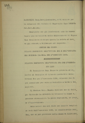 Bilanci preventivi dell'Ufficio Pio e dell'EDI per l'esercizio 1930