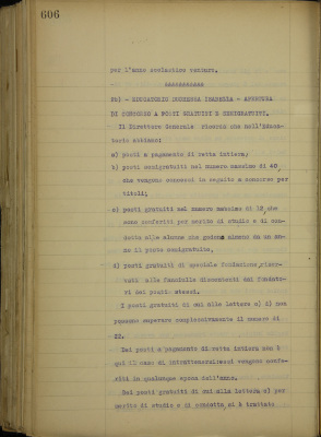 c) concessione di posti gratuiti per merito di studio e di condotta