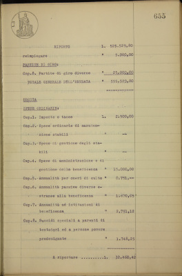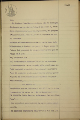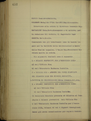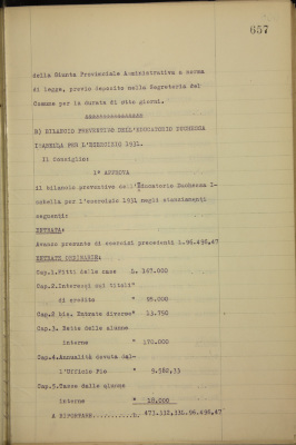 1. Bilanci preventivi per l'esercizio 1931: a) dell'Ufficio Pio b) dell'EDI
