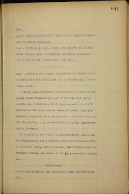 Parte seconda - Aziende di Beneficenza 2. Assestamento del bilancio 1930 dell'Ufficio Pio