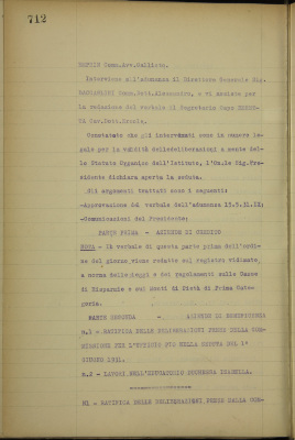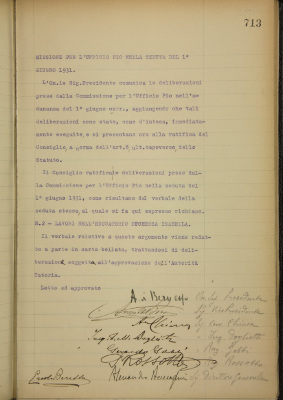 Parte seconda - Aziende di Beneficenza 1. Ratifica delle deliberazioni prese dalla Commissione per l'Ufficio Pio nella seduta del 1 giugno 1931