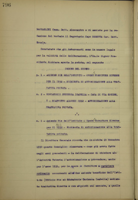 1. Aziende Pie dell'Istituto. Opere e forniture diverse per il 1932. Richiesta di autorizzazione alla trattativa privata