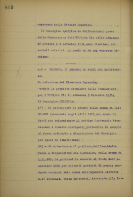 Parte seconda - Aziende di Beneficenza 1. Ratifica delle deliberazioni prese dalla Commissione per l'Ufficio Pio nelle adunanze 16 ottobre e 9 novembre 1931
