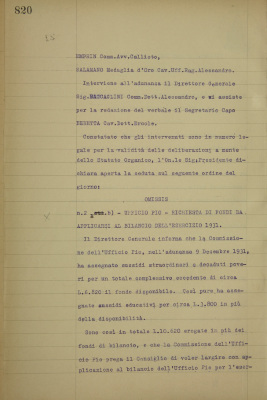 2.b) Ufficio Pio. Richiesta di fondi da applicarsi al bilancio dell'esercizio 1931