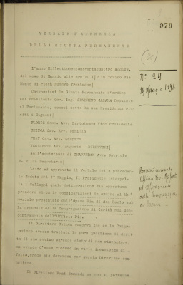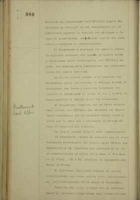 Concentramento dell'Ufficio pio. Risposte al memoriale della Congregazione di carità