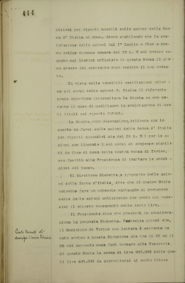 Conto corrente con il Municipio di Torino. Riduzione
