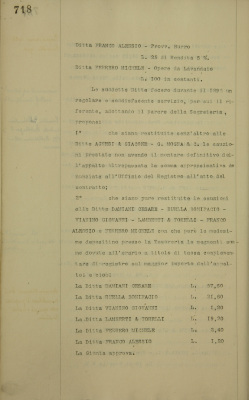 Provveditori dell'EDI per il 1895, restituzione della cauzione