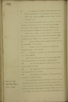 Monte di pietà, chiusura dell'esercizio pegni per il 1894