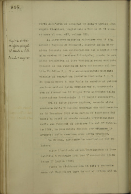 Napione Antonio ex cassiere principale del Monte di pietà, svincolo di cauzione