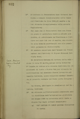 Lascito Bernocco, sussidio ai discendenti Vay
