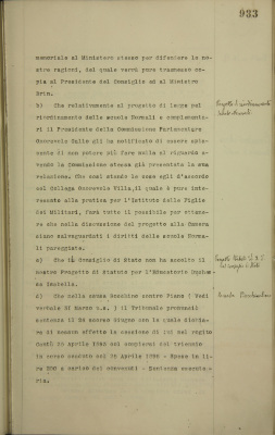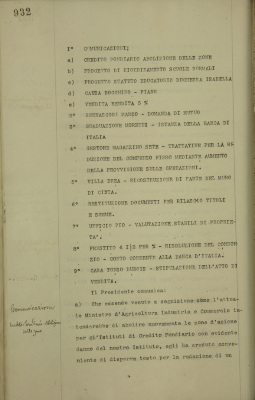 Comunicazioni: Credito fondiario, abolizione delle zone; progetto di riordino delle scuole normali; progetto statuto EDI; causa Bocchino, piano; vendita rendita 5%