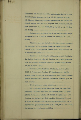 Carrera Rosa, vedova Vernoni, liquidazione di pensione