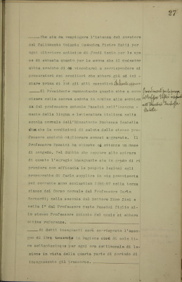Provvedimenti per la surroga del prof. Fassini insegnante nell'EDI