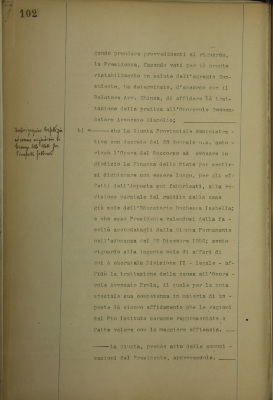 Comunicazioni: a) incarico al comm. Gianolio di trattare per la definizione della vertenza Moscato Botto; b) autorizzazione prefettizia ad invocare in giudizio la Finanza dello Stato per l'imposta sui fabbricati