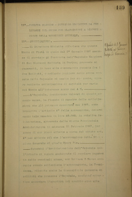 Ospedale di San Giovanni Battista di Torino. Servizio di tesoreria