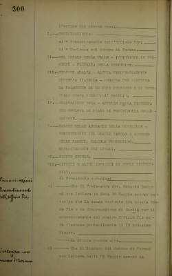 Comunicazioni: a) concentramento dell'Ufficio pio; b) vertenza con il Comune di Teramo