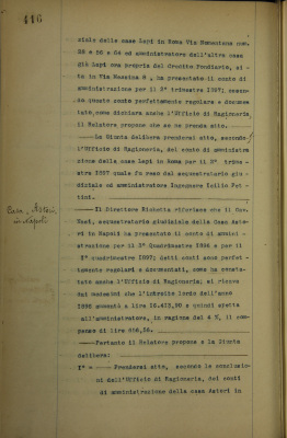 Casa Astori in Napoli. Conto d'amministrazione per il 3° quadrimestre 1896 e il 1° quadrimestre 1897