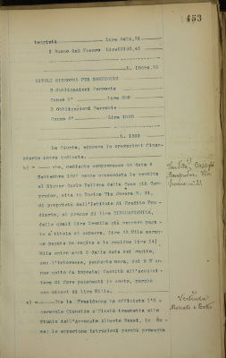 Comunicazioni: a) operazioni finanziarie fatte per conto del Monte di pietà; b) vendita casa di Campredon, via Juvara n. 21; c) vertenza Moscato e Botto; d) IV Congresso dei Monti di pietà in Milano