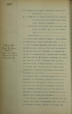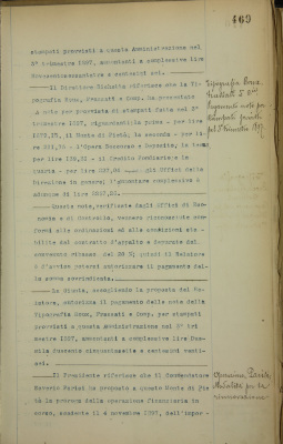 Tipografia Lecco, Gerbone e Delleani. Pagamento delle note per stampati provvisti nel 3° trimestre 1897