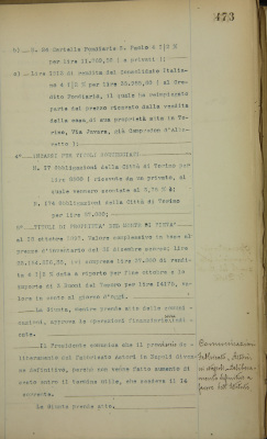 Comunicazioni: a) fabbricato Astori in Napoli, deliberazione definitiva a favore dell'Istituto
