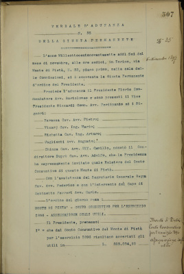 Monte di pietà. Conto consuntivo per l'esercizio 1896. Assegnazione degli utili