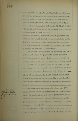 Ing. Giuseppe Pastore, pagamento di parcella