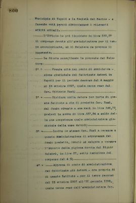 Casa già Astori in Napoli. Conto di chiusura dell'amministrazione giudiziale al 13 ottobre 1897. Conto di amministrazione al 31 dicembre 1897.