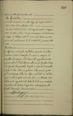 Trattativa privata con il pittore E.D. Seneriglio per la decorazione di un salone dell'alloggio appigionato al Club Alpino Italiano nella casa di via Monte di pietà n. 28