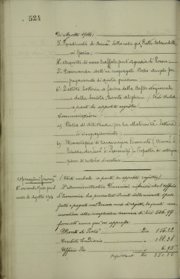 Conto minute spese dell'Ufficio di economia per il mese di agosto 1904