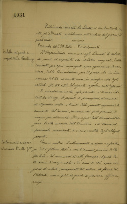 Personale dell'istituto. Provvedimenti: tabelle dei punti e proposte della Presidenza; collocamento a riposo del commesso Vinelli Giuseppe; domanda dell'economo per aumento di indennità; domanda del sig. Alfano Francesco per ammissione in ruolo