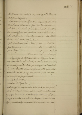 Provvista di carbone per l'EDI. Pagamento note relative