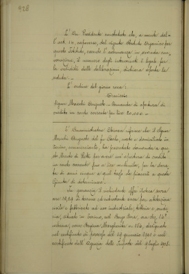 Macchi Augusto. Domanda di apertura di credito in conto corrente per lire 20.000